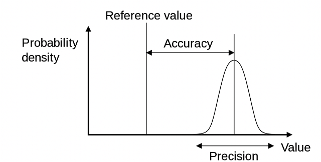 Precision is not the same as accuracy. You can be very precise and still be inaccurate. Conversely, you can be very accurate but show very little precision in your communication. You could look those terms up at Wikipedia, and find your brain scrambled by the explanation. Or you could just look at a recent xkcd comic. To illustrate the difference, Randall Munroe made this graph with "facts" that show a range of both precision and accuracy.