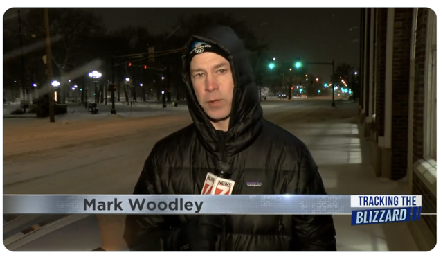 Mark Woodley normally does sports at KWWL-TV in Waterloo, Iowa. But he was requested to report on the blizzard that was moving through the area early Thursday morning. Very early! Woodley couldn't help but throw some shade at the assignment. ā