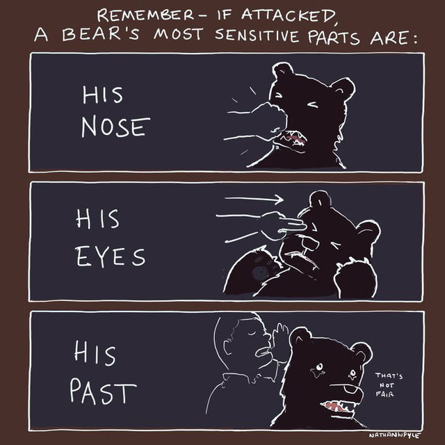 In this webcomic by Nathan W. Pyle, Bear protests, “That’s not fair.” No, it’s not. But the online world is not fair. The online world is ruthless. So Bear had better watch himself unless he would like for blog posts from 2008 to go public.