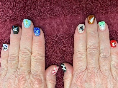 Twitter user Hannah shares this image of her mother’s nails, which depict all ten of these catastrophes. It’s gone viral and Hannah is delighted at her mom’s sudden fame. She’s putting it to good use to find dates for her mom.