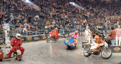 Psst! Wanna see a motorcycle race? How about a motorcycle race on a track glazed with Dr. Pepper? How about a race with some unexpected entrants?