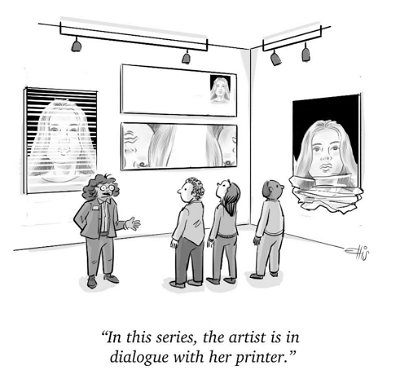 Ellis Rosen, a cartoonist for the New Yorker, understands this suffering. In a recent cartoon, he describes a cartoonist who cathartically finds productive artistic expression through one of these monsters in our midst.