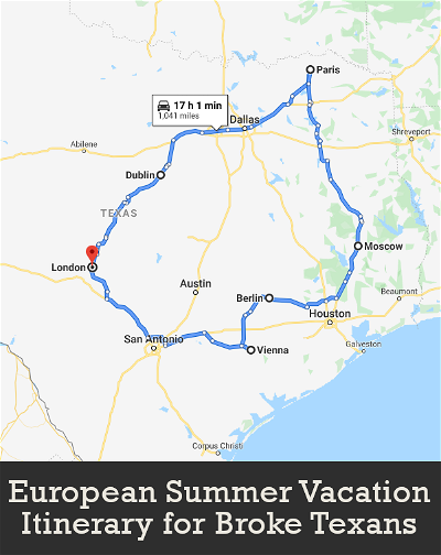 Redditor /u/delugetheory lives in Texas (well, technically—he’s in Austin) and makes maps illustrating novel criteria about it. A few years ago, he composed this map showing how the enterprising Texan could travel across the globe without leaving the state. Almost a full day of driving is necessary, but at least you’ll never be more than a few minutes away from great barbecue.